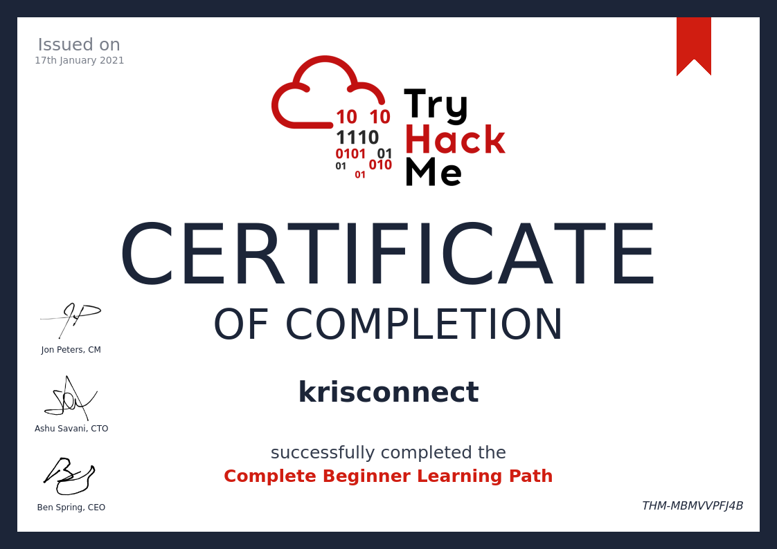 kris:Certs that I found mighty helpful or enjoyed to bits! kris:Industrial Cybersecurity - GICSP - SANS. kris:Industrial Cyber Security. kris:CompTIA Cybersecurity Analyst (CySA+). kris:Complete Beginner Learning Path - THM. kris:Web Fundamentals Learning Path - THM. kris:CompTIA - THM. kris:Cyber Defense Learning Path - THM. kris:Offensive Penetration Tester Learning Path - THM. kris:Junior Penetration Tester Learning Path - THM. kris:Elasticsearch - Udemy. kris:Logstash - Udemy. kris:Kibana - Udemy. kris:API Penetration Tester - API Security University. kris:Incident Responder - LetsDefend. kris:Functional Patterns Human Biomechanics Fundations Practitioner. kris:Security Engineer - THM. kris:All the things blockchain...smart marketing!. kris:DevSecOps - THM. kris:AWS - THM. kris:Rapid7 - InsightVM Administrator. kris:Vulnerability Manager(LDR516) - SANS. kris:Zero-trust Architect GDSA - (SEC530) - SANS. kris:Purple Team, Defending Advanced Threat - GDAT (SEC599) - SANS. kris:Verify.